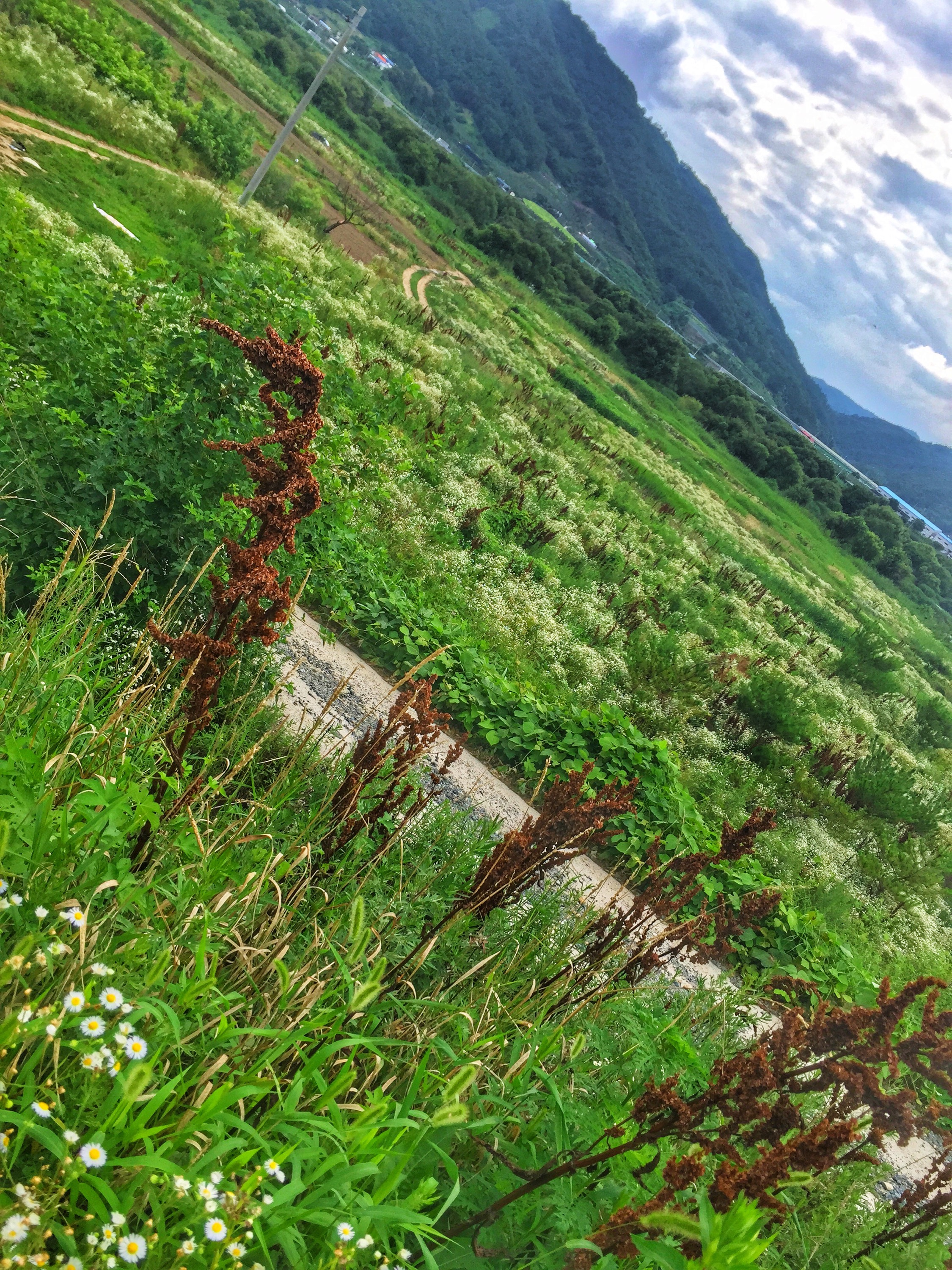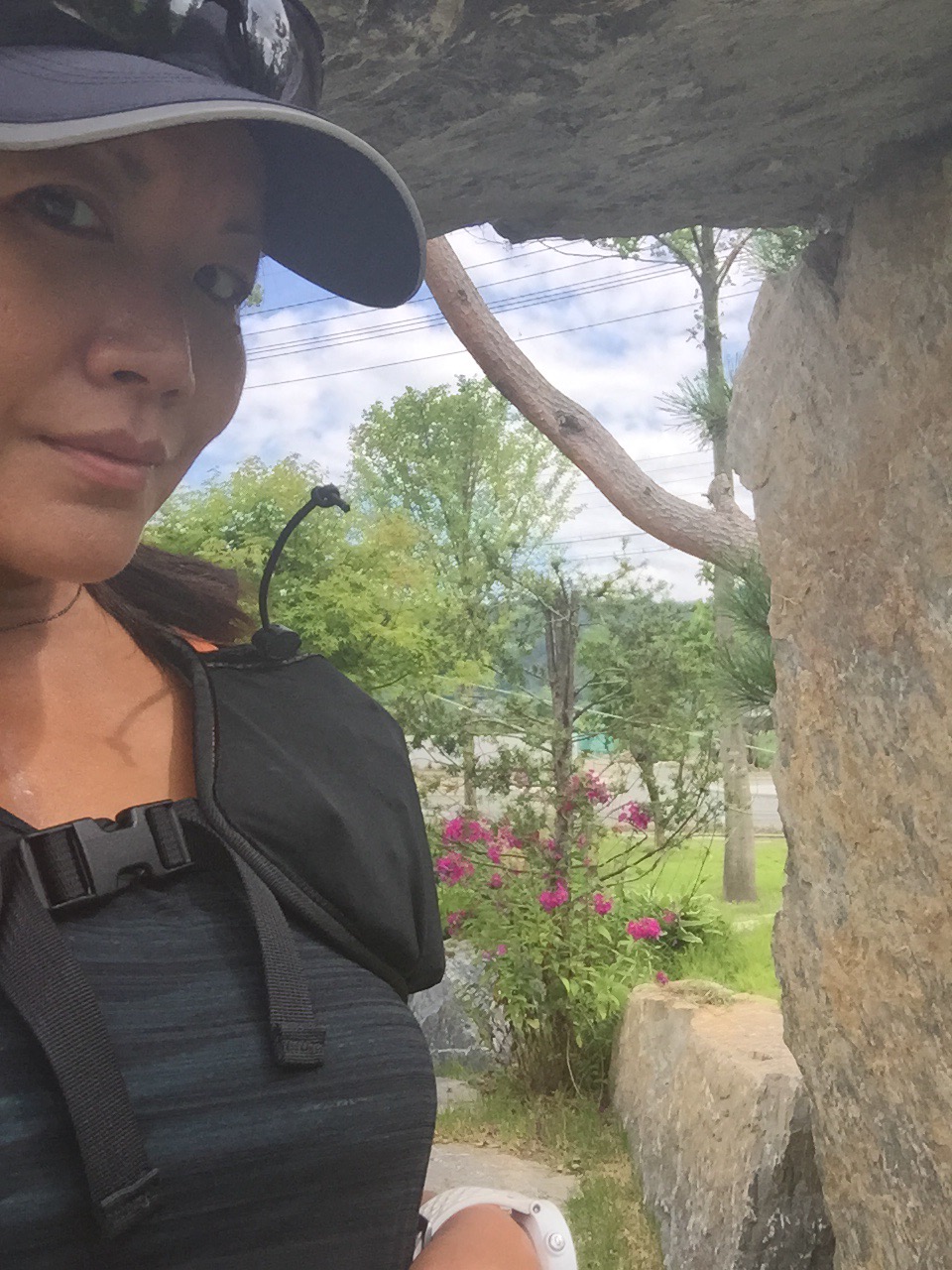 Ha! Chungju’s trails were paved with cobblestones or just dirt and overgrown bush. Not complaining, mind you, but a stark contrast to Seoul and added to difficulty of the day! However, my first challenge was taking on the ungodly humidity of nearly 90%. Temp was around 80 but mostly full midday sun which had me dripping wet even while standing still doing nothing but texting! LOL